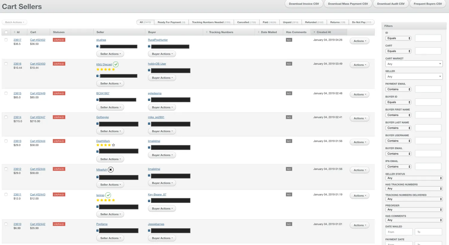 The list page has multiple filters and helps buyers find items as fast as possible.
