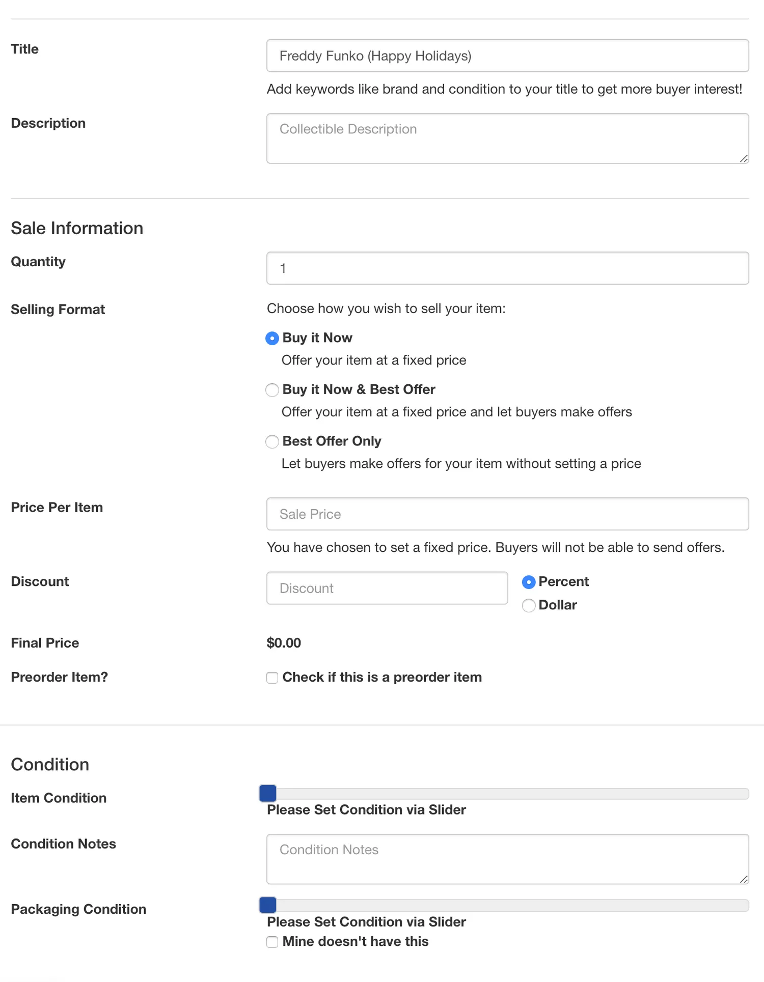The sell form allows the seller to post the best possible data to increase their conversions.