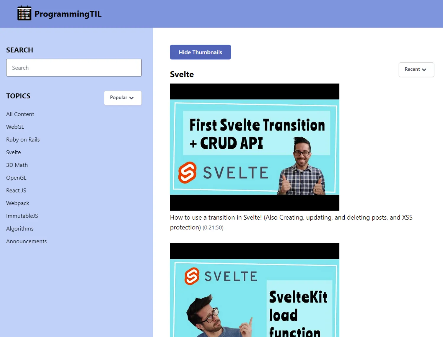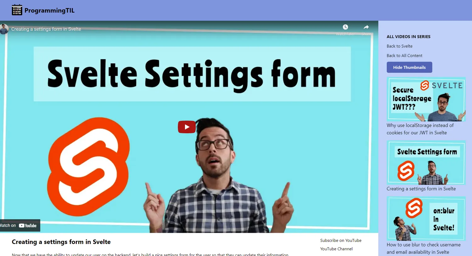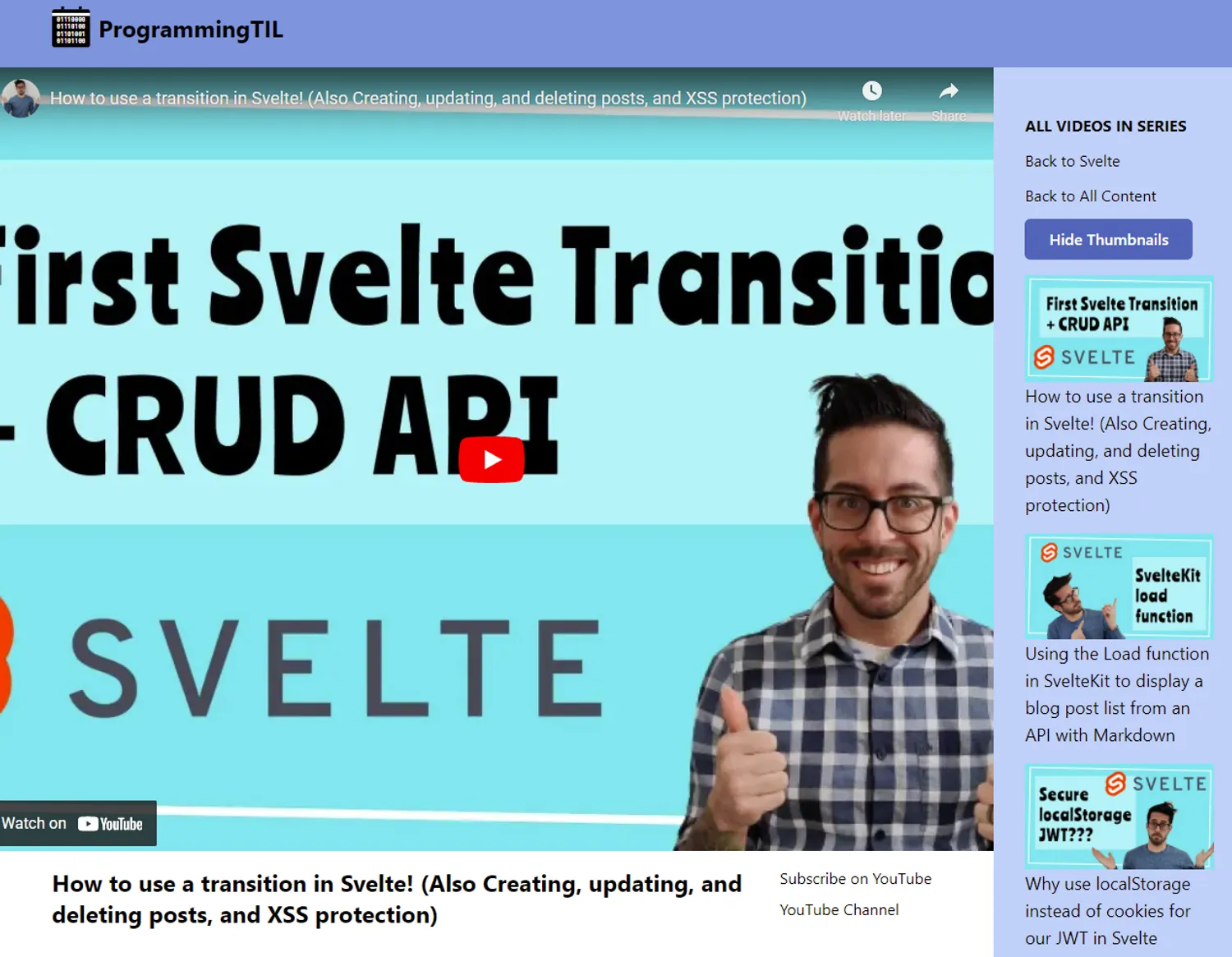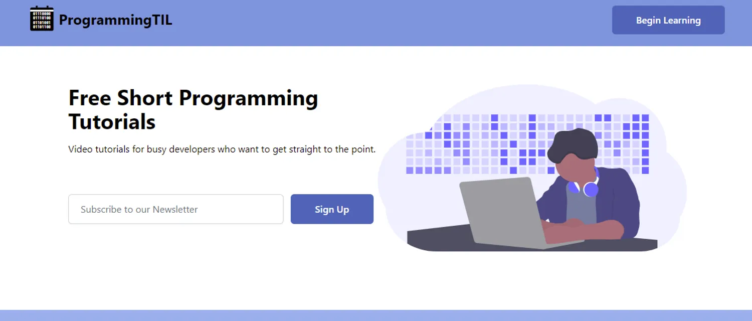 ProgrammingTIL helps developers and programmers grow in their skillset by providing free video tutorials (screencasts) for various topics.
